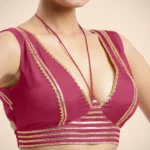 Ahana x Tyohaar | Rani Pink Sleeveless FlexiFi Saree Blouse with Plunging Neckline and Back Cut Out with Tasteful Golden Gota Lace Embellishment