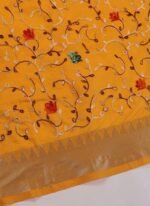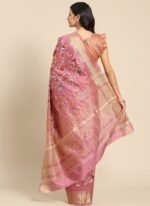 Step into the realm of timeless elegance with this exquisite Pink Assam Cotton Silk Saree meticulously crafted to captivate hearts and turn heads. The soft yet opulent fabric a fusion of Assam cotton and silk drapes gracefully offering comfort without compromising on sophistication. The delicate thread embroidery work adorning this saree adds an enchanting allure evoking a sense of traditional charm blended seamlessly with contemporary finesse. Each intricate detail speaks volumes about the skilled craftsmanship and dedication poured into its creation making it a true masterpiece. Accentuating its beauty is the temple contrast border a hallmark of South Indian craftsmanship which adds a regal touch to the ensemble. The juxtaposition of vibrant hues against the serene pink background creates a mesmerizing contrast elevating its allure to new heights. Perfect for exclusive soires and grand occasions this saree exudes an aura of exclusivity and sophistication making it an ideal choice for those who seek to make a statement with their attire. Whether its a lavish party or a cultural celebration this saree ensures you stand out with poise and grace. Embrace the timeless charm of Indian heritage while embracing modern sensibilities with this exclusive party wear saree. Its not just a garment its a testament to the rich cultural tapestry and the enduring legacy of Indian craftsmanship. Flaunt your style with confidence and grace as you adorn yourself in this resplendent attire destined to leave a lasting impression wherever you go.