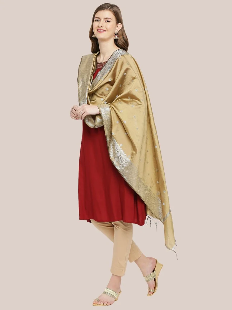 Add a touch of elegance to your wardrobe with this exquisite piece of splendid shaded Banarasi Silk Dupatta. Swathed with elegant woven motifs, this classic stunner in super smooth fabric is a must in your ethnic collection.