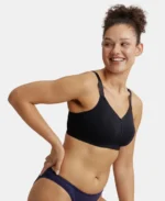 Black Combed Cotton Elastane Stretch Full Coverage Minimizer Bra