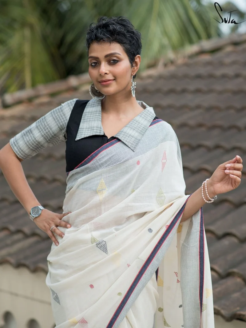 Cream Elbow Sleeves FlexiFi Saree Blouse