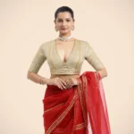 Cream Elbow Sleeves FlexiFi Saree Blouse