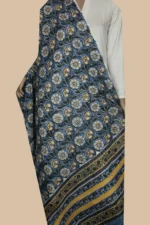 Deep Blue with Florals Block Printed Mul Cotton Dupatta