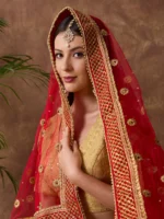 This gorgeous net dupatta in auspicious colour can be used as a bridal Dupatta /Chunri to cover the head and shoulders during functions and ceremonies. It can also be used to visit religious places and functions like mata ki chowki, etc. This dupatta will be a wonderful addition to your wedding wardrobe.