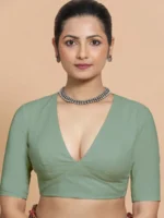 Malika x Rozaana | Deep Neck Saree Blouse in Peppermint Green Linen