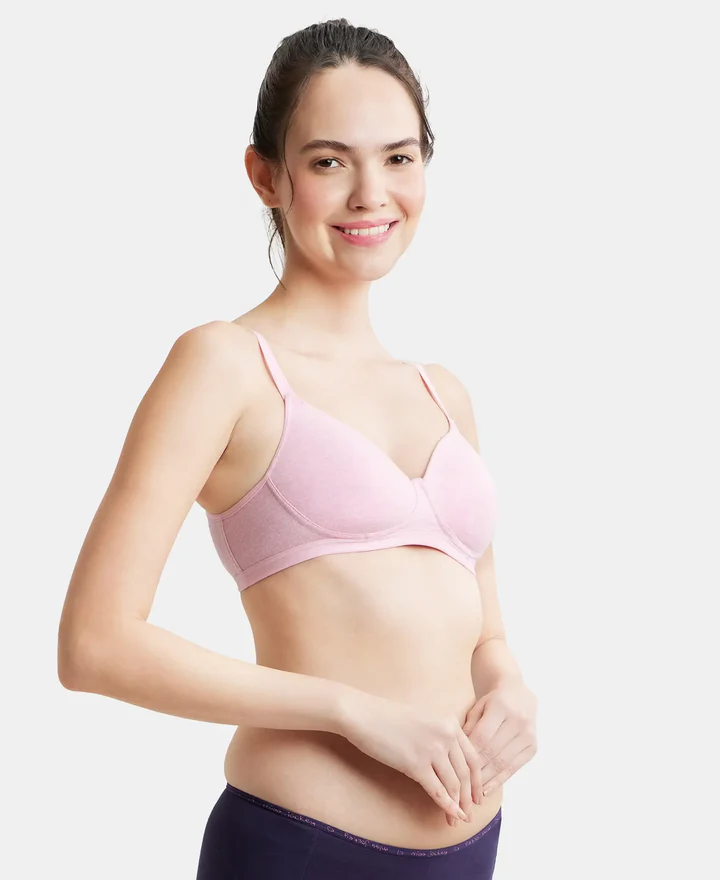 Home Bra Padded Bra Pink Lady Melange Wire free Padded Super Combed Cotton Elastane Stretch Full Coverage Bra
