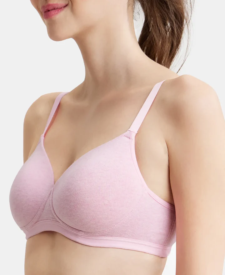 Pink Lady Melange Wire free Padded Super Combed Cotton Elastane Stretch Full Coverage Bra