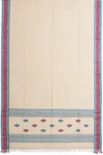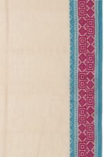 Elegant in its simplicity, this Plain Beige Bengal Cotton Saree is beautifully complemented by a serene sea blue border featuring fine threadwork and subtle geometrical designs. The self-coloured pallu is adorned with threadwork diamond buttas and matching geometrical patterns, finished with soft tassels for a graceful touch. Paired with a plain self blouse with a border, it’s ideal for understated, everyday elegance.