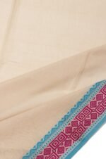 Home Saree Plain Beige Bengal Cotton Saree with Sea Blue Border