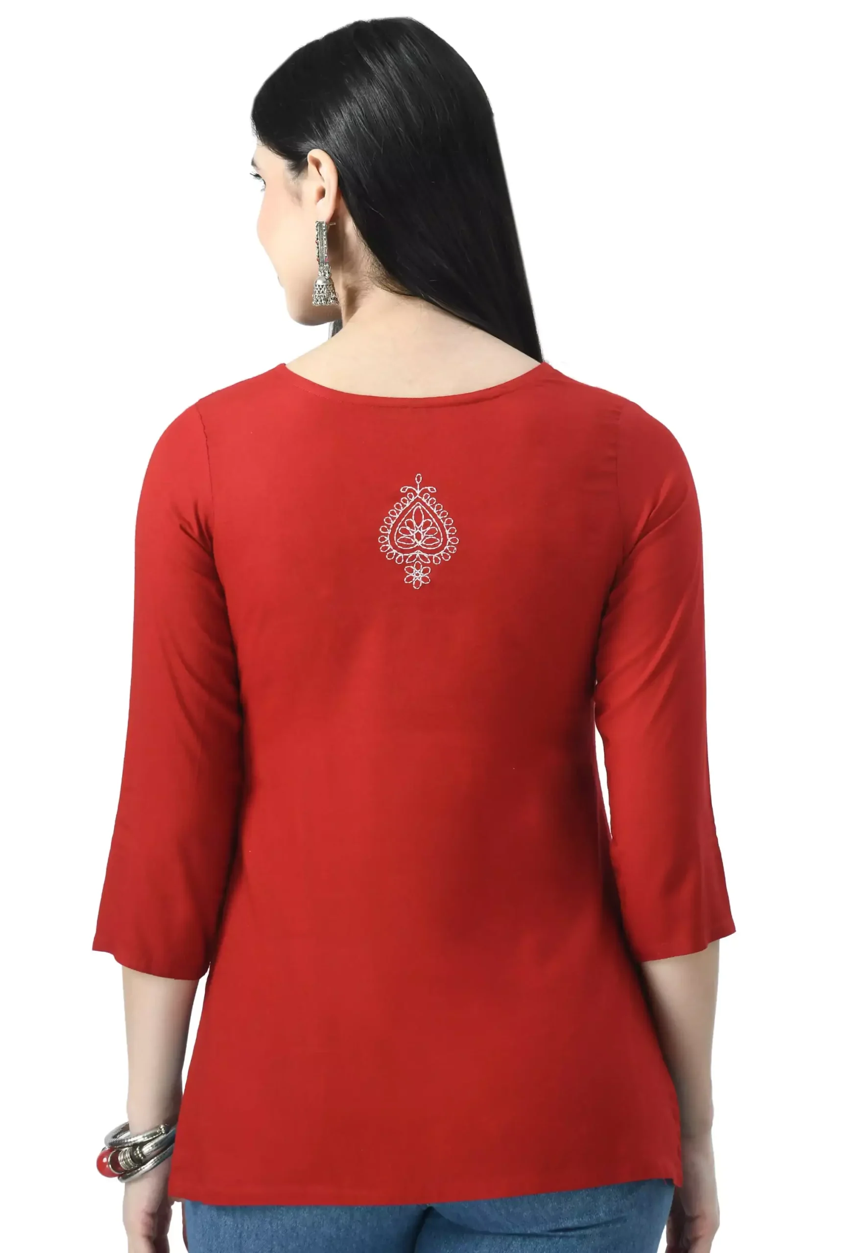 Red Kashmiri Embroidered Short Kurti ₹700.00