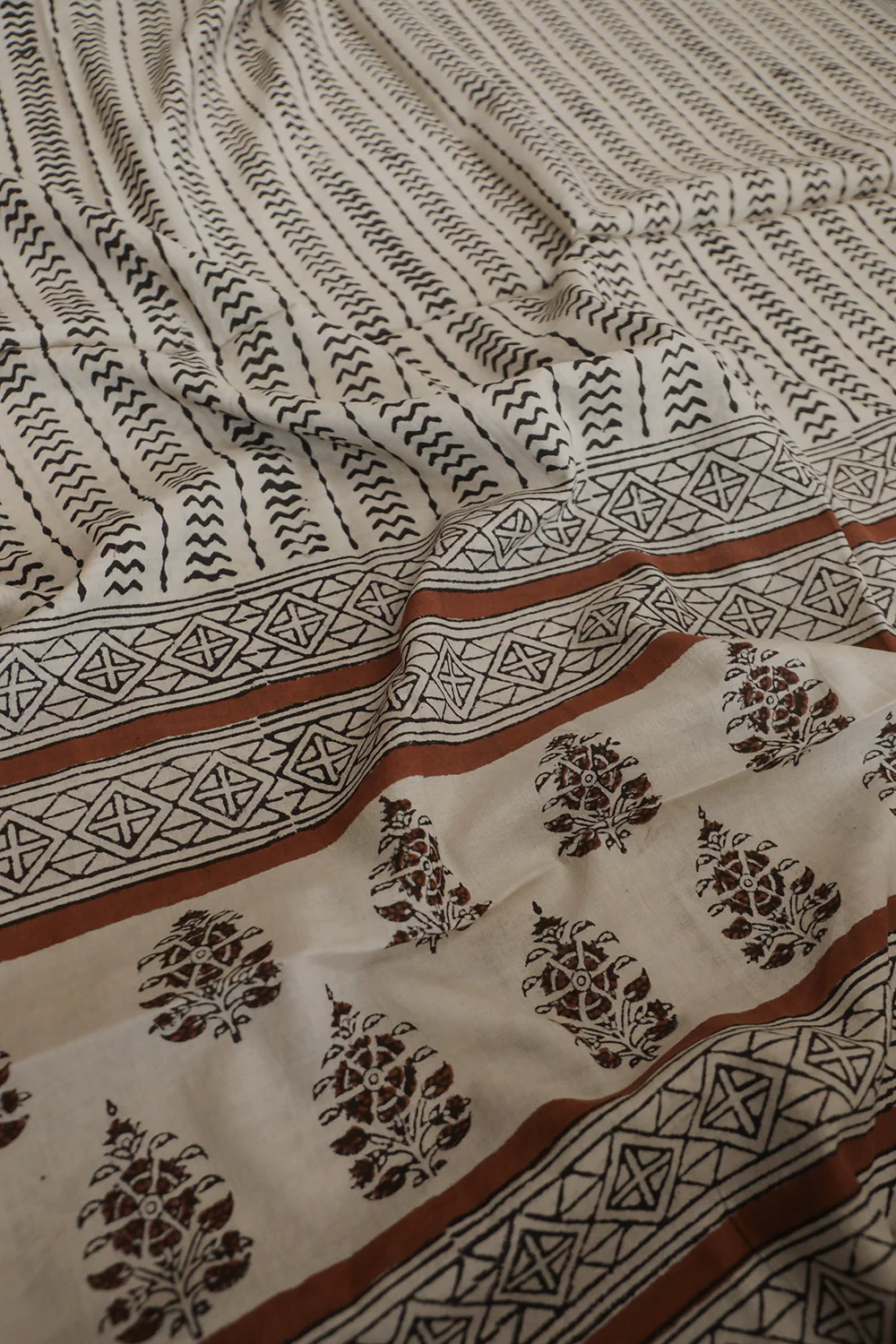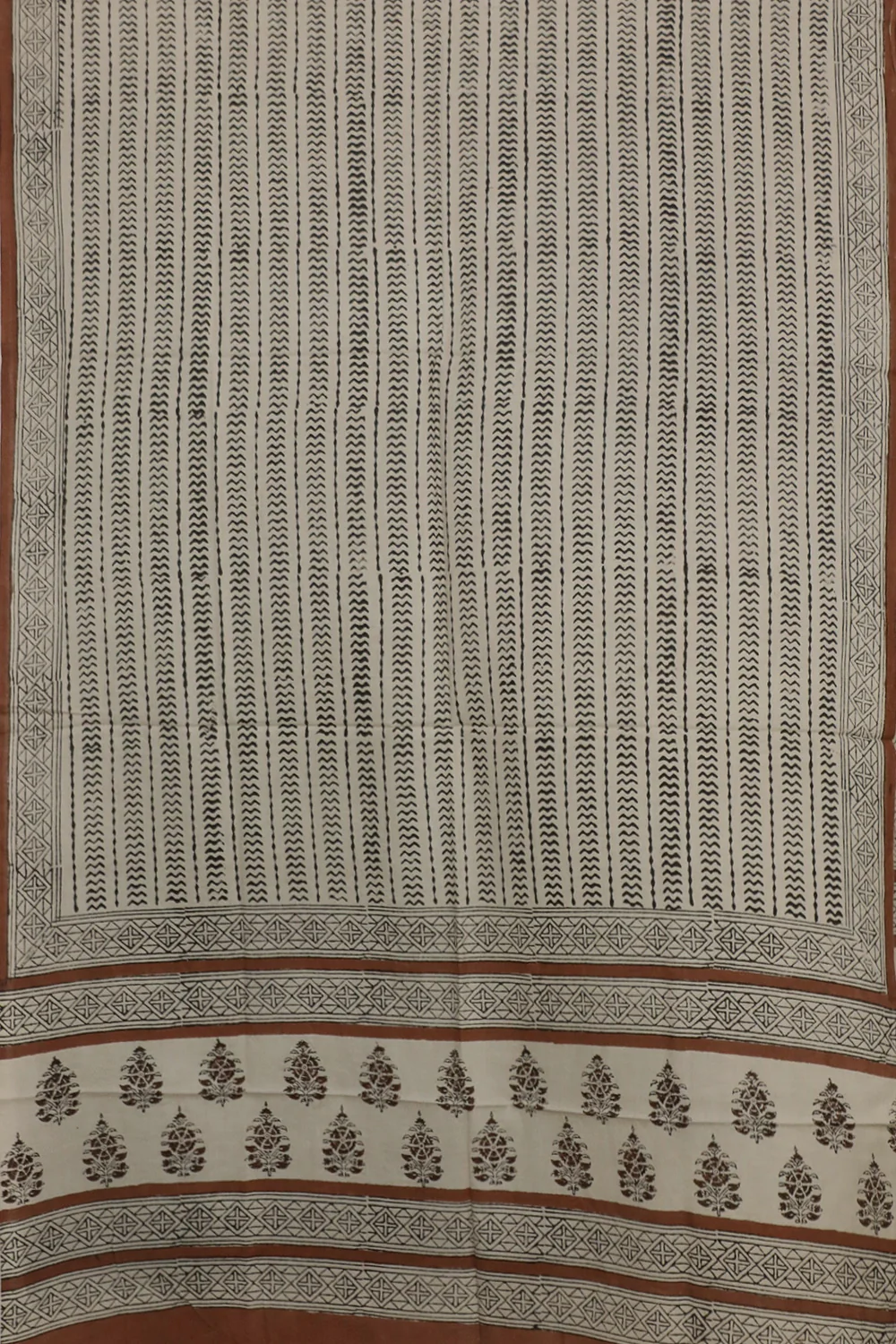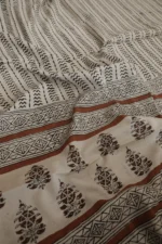 Striped Pattern on Cream Block Printed Mul Cotton Dupatta
