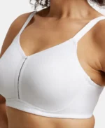 Home Bra Non Padded Bra White Super Combed Cotton Elastane Stretch Full Coverage Minimizer Bra