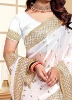 The Rust Zari Embroidered Sequins Saree is a stunning ensemble that perfectly blends elegance and craftsmanship. This saree is designed to make a bold statement with its luxurious Rust fabric enhanced by intricate zari embroidery and shimmering sequins. The combination of Rust with golden zari work creates a striking contrast, making this saree a showstopper for any grand occasion. The embroidery follows traditional patterns seamlessly blending with the modern sequins detailing, which adds a touch of contemporary sophistication to the attire. The saree drapes gracefully, exuding a timeless charm that complements various body types.